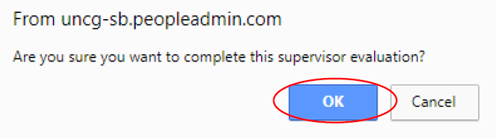 All fields must be completed by the Supervisor before the process can be marked as complete. Please ensure all necessary information has been entered/completed prior to clicking ‘OK’. If you complete the action in error, you will need to contact the HR system administrator to re-open the task for you.
