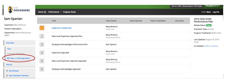 3. Select Mid-Year, or Self Appraisals in left menu.