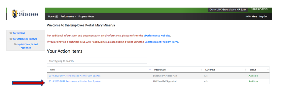 6. Return Home and open the Mid-Year in Your Action Items.